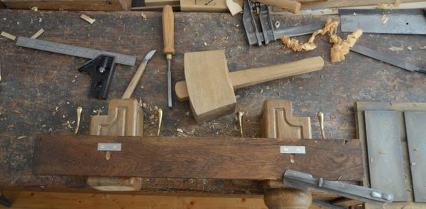 Traditional woodworking projects made with hand tools by humans